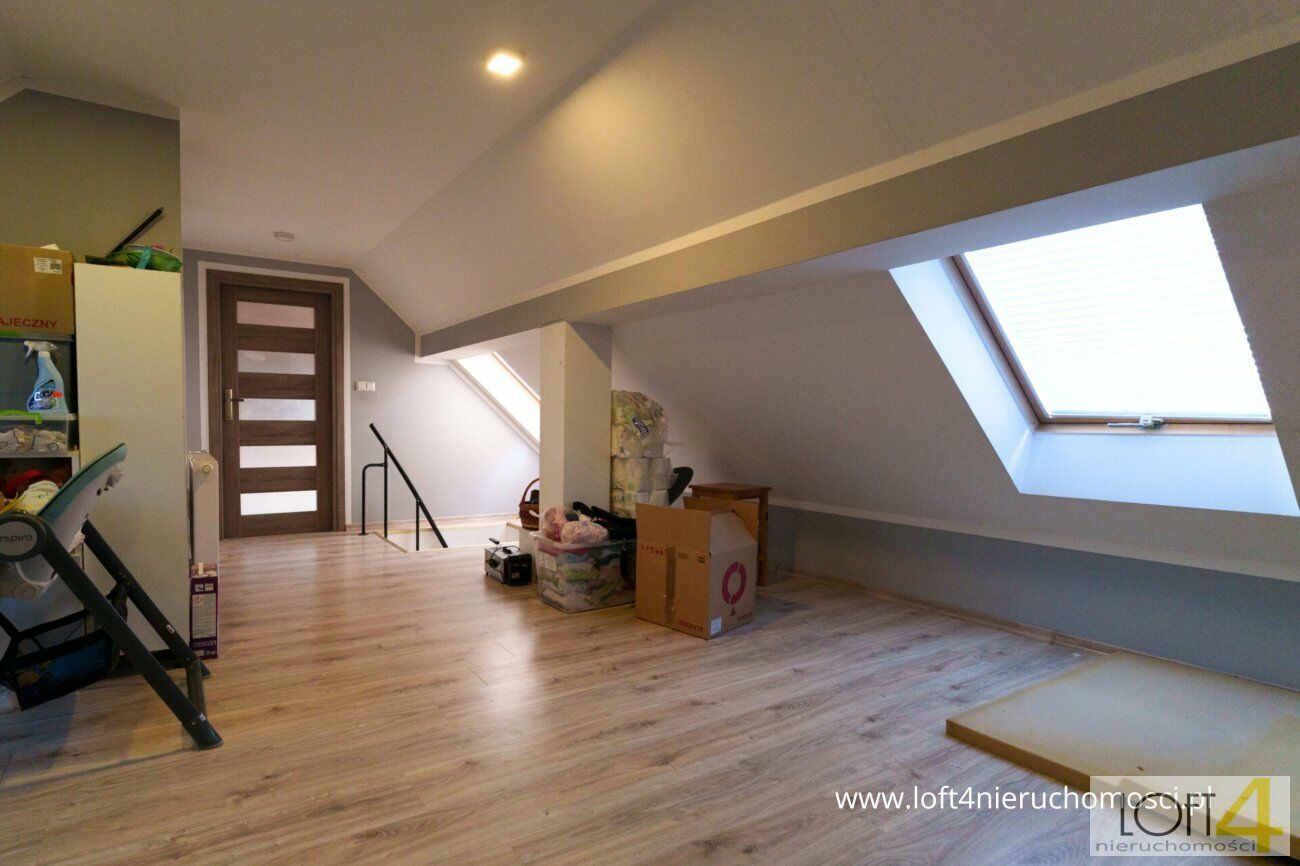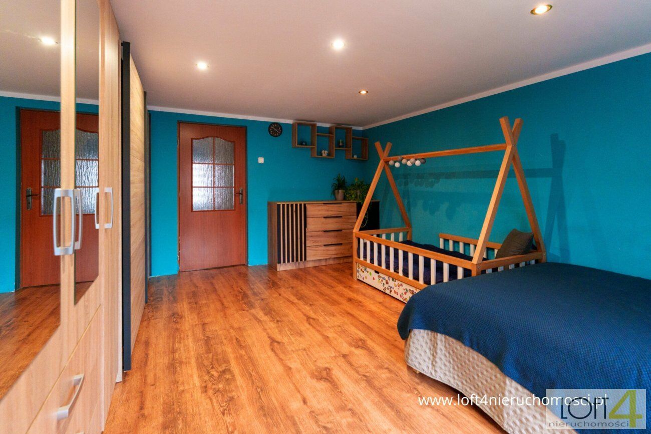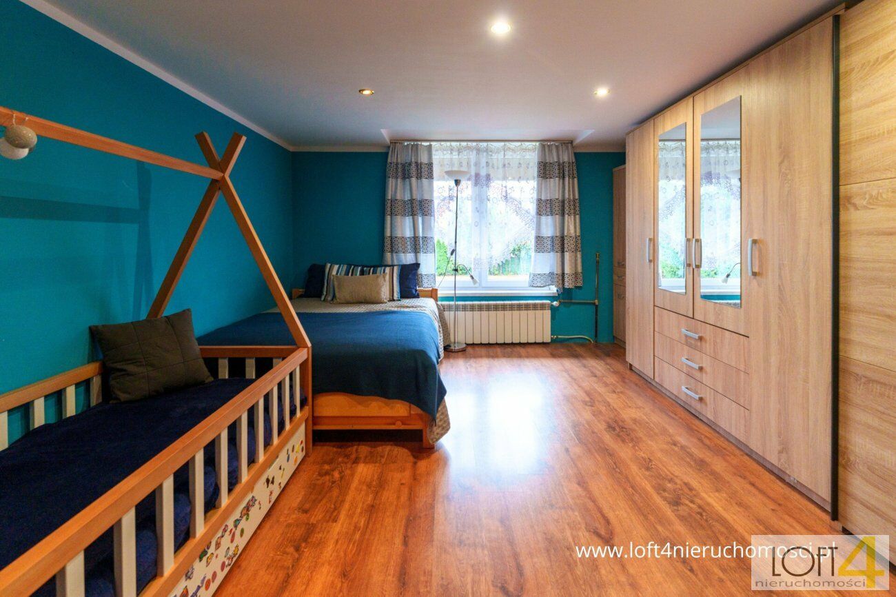 Dom o powierzchni 197 m2, położony jest na ponad sześcio arowej działce, posiada trzy kondygnacje, co zapewnia wygodną przestrzeń dla całej rodziny. Na parterze (przyziemiu) znajduje się funkcjonalna kuchnia, dwa pokoje, łazienka oraz kotłownia z piecem węglowym - z możliwością podłączenia instalacji gazowej. Pierwsze piętro tworzy strefę dzienną z trzema przestronnymi pokojami, kuchnią z jadalnią oraz łazienką wyposażoną w wannę. Z tej kondygnacji prowadzi wyjście na duży taras, idealny na wypoczynek i rodzinne spotkania. Część poddasza została świeżo wyremontowana, dzięki czemu można ją dowolnie zaaranżować - na sypialnię, pokój dziecięcy lub gabinet. Budynek oferuje duży potencjał aranżacyjny. Działka jest zadbana i ma regularny kształt, co umożliwia stworzenie ogrodu, warzywniaka lub strefy rekreacyjnej w drewnianej altance.